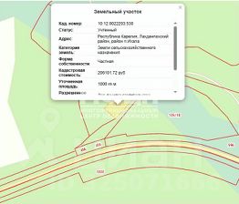 - общая площадь: 183.9 соток (10:12:0022203:537 - 173.9 соток, 10:12:0022203:530 - 10 соток);