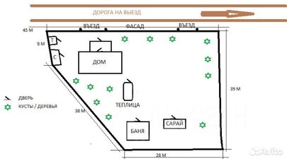 На участке расположена теплица , растут яблони, слива, смородина, крыжовник, кусты клубники.