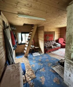 Дом общей площадью 26,5 квадратных метров. Построен из бревен, возведён на ленточном фундаменте, одноэтажный с мансардой. Внутри предусмотрено печное отопление. Электричество подведено к участку, однако требуется подключение к дому. Водоснабжение обеспечивается за счёт колодца, расположенного на территории.