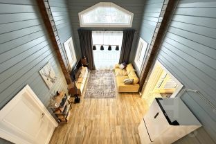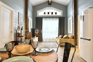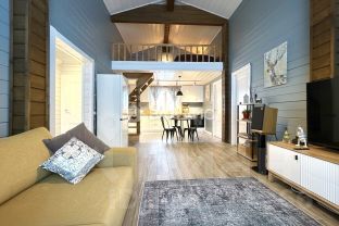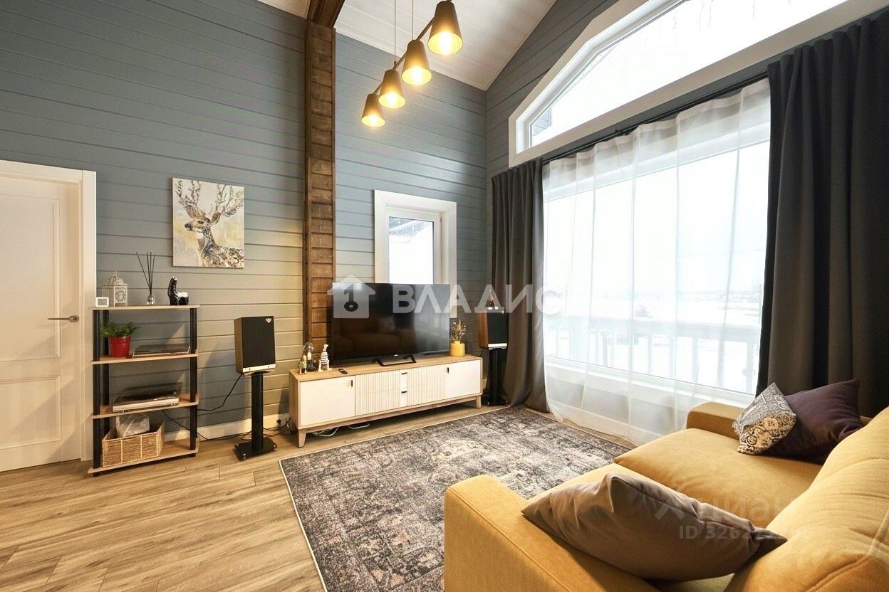 Просторная гостиная с разными сценариями освещения и панорамным остеклением позволит наслаждаться комфортным отдыхом и красивыми видами;