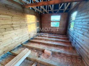 На участке стоит дом из бруса размером 66 м на свайном фундаменте с кровлей из металлочерепицы, который станет надёжной основой для дачи или будущего дома для круглогодичного проживания. Дом не стоит на учёте, что даёт гибкость при планировании использования и будущих изменений.