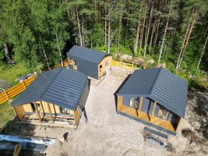 На участке располагается 2 дома с террасой, которые можно использовать, как дачу для себя и родителей или под арендный бизнес, по 48 кв.м. каждый и баня 40 кв.м. (есть возможность преобразовать баню в гостевой дом).