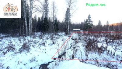 Лес на границе с участком. На соседних участках уже построены новые дома. Участок ровный, без высоких деревьев. По периметру участка прокопаны канавы для стока талой и дождевой воды, соответственно участок сухой.
