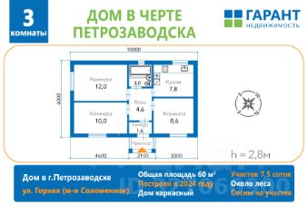 Предлагается к покупке: Дом с готовой каркасной конструкцией 60 м² в Петрозаводске, микрорайон Соломенное, на участке: 7,5 соток, окружённых сосновым бором.
