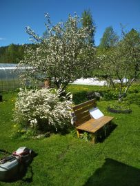 Продам жилой рубленый дом, обшитый доской и рейкой по финской технологии, внутренняя обшивка вагонка, крыша под металлопрофилем, окна стеклопакеты, полы деревянные, печь с камином, на втором этаже три спальные комнаты, терраса частично застеклённая, летний водопровод от личного колодца, электричество от ТНС энерго Карелия показания передаются автоматически со счётчика на столбе. На земельном участке в 23 сотки посажены плодоносящие деревья яблони, сливы, вишня, груша, кусты смородины чёрной и красной, крыжовника, садовой малины, черноплодной рябины, облепихи, калины, клубники. Установлен 6-метровый парник с поликарбонатным покрытием. Душевая комната- в отдельно построенном помещении, имеются иные хозпостройки. Участок расположен на возвышенном месте, до реки, по которой сплавляются рыбаки в шхеры Ладоги, метров 300. Соседи замечательные.