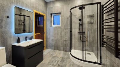 Отделка в коттедже чистовая. Ванная комната полностью оборудована, сауна.