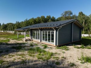 На участке расположен одноэтажный коттедж из клееного бруса, построен по индивидуальному проекту (финский дом Lahti):
