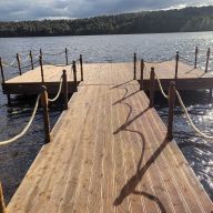 Пирс площадью 45 метров (9х5) и дорожка от берега 8 м длины; выполнен на железных сваях, отделка — лиственница, обработан маслом. Глубина акватории у пирса - 2,5-3 м.; прибрежная зона очищена от растительности и отсыпана песком.