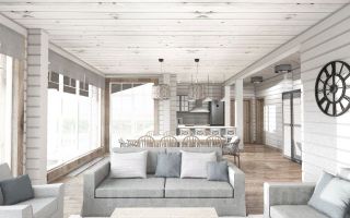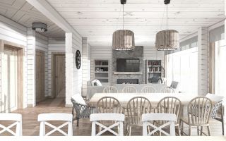 Высота потолков в доме 3,2 м, в бане — 3,0 м.