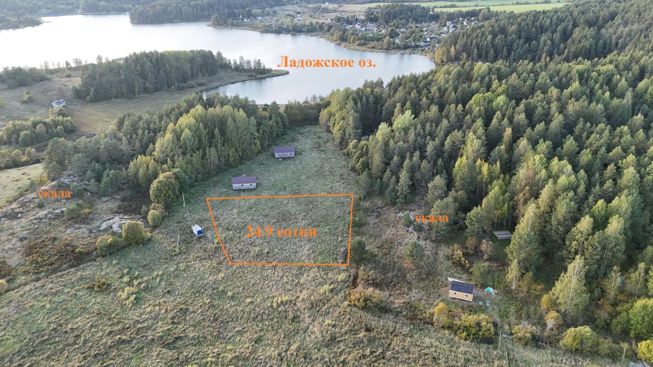 Ровный участок с новым утеплённым домом-студией (33 м2), дом без внутренней отделки. В 190 м от берега Ладожского озера (залив Токкарлахти). Земли ИЖС (прописка), административно относится к городу Сортавала. Электричество подведено к участку. Участок приобретался для себя.