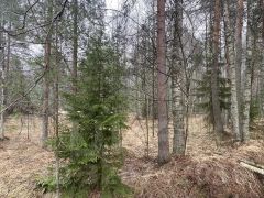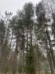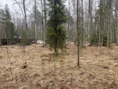 Почва: песок. Сосны и ёлки на участке.