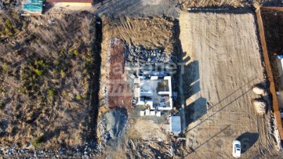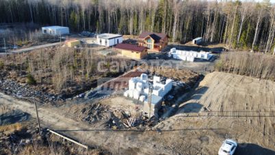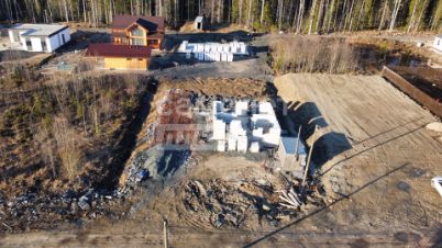 На участке выполнена значительная часть работ: участок разработан, очищен, сделана дренажная система, залита монолитная плита с инженерной подушкой и возведена часть первого этажа. Все работы выполнены по проекту и современным технологиям, что сокращает сроки и расходы на дальнейшее строительство.