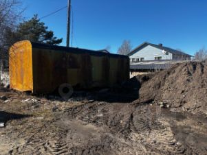 На участке стоит баня из кругляка, а также ангар под строительные материалы