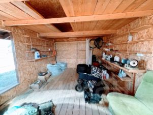 Гостевой дом: состоит из 2 комнат спальня и гостиная (с печкой), коридор с гардеробом и ванная комната (боллер, ванная, раковина, унитаз, гарнитур), по всему дому водяные теплые полы, мебель (кухня с варочной панелью и духовым шкафом).
