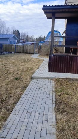 К участку примыкает баня, где можно расслабиться после трудового дня. Участок огорожен забором, что обеспечивает приватность и безопасность.