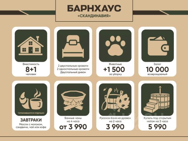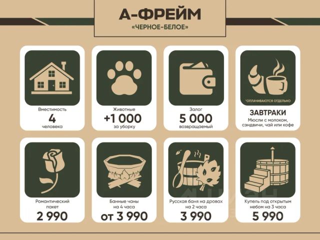 Дополнительные услуги: завтраки, баня на берегу озера, аренда сап-бордов, велосипедов, экскурсии по Карелии, трансфер.