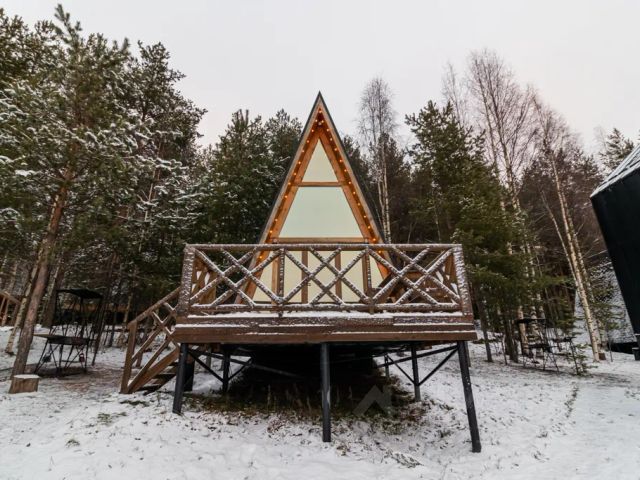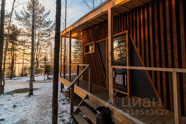 Домик для круглогодичного проживания с террасой. Рассчитан на 2х человек, +1 человек (за доп. оплату предоставляем эргономичную раскладушку с матрасом и комплектом постельного белья. Домик с панорамным окном (с ролетной шторкой) и видом на озеро.