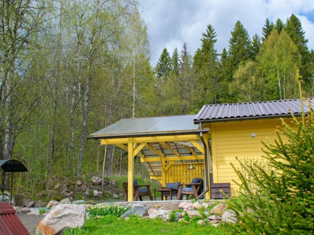 - В доме гостиная-кухня с камином, с диваном 200*220, одна спальня с 2х спальной кроватью 160*200, с качественным ортопедическим матрасом и сатиновым бельем.