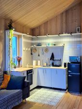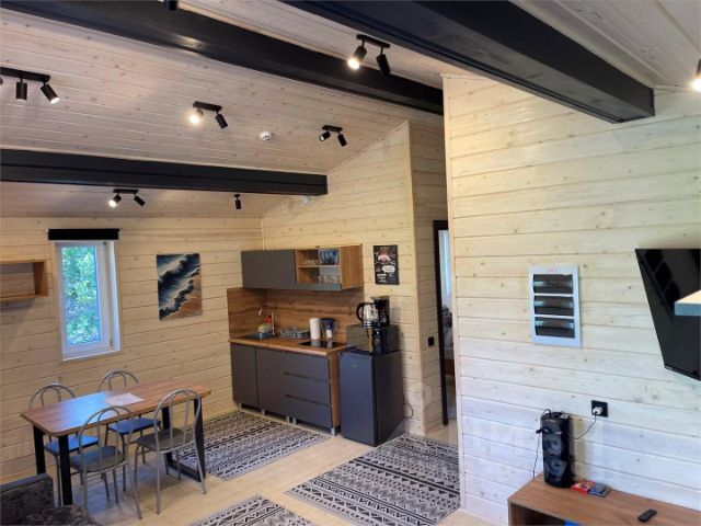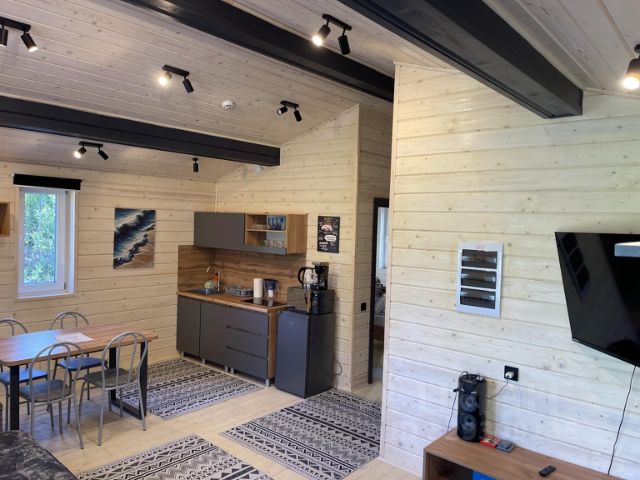 1 этаж: большая кухня, совмещенная с гостиной, ванная комната, туалет, сауна-о ней напишу ниже(входит в стоимость проживания).