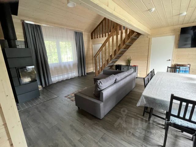 На первом этаже общая кухня столовая 28 кв.м.Печь шведка, камин, оборудованная кухня с посудой, угловой диван , обеденный стол, эл.плита, микроволновая печь. Плазменный телевизор.Спутниковое ТВ .Пастельное бельё, автостоянка входит в стоимость проживания. Туалет с душевой кабинкой также расположен на первом этаже дома, в сан.узле тёплый пол, бойлер на 100 литров,стиральная машина,артезианская вода со своей скважины.