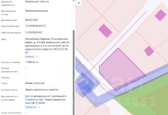 площадь 1 437 кв.м, местоположение: Российская Федерация, Республика Карелия, Питкярантский муниципальный округ, д. Кавгозеро, вид разрешенного использования Для индивидуального жилищного строительства.