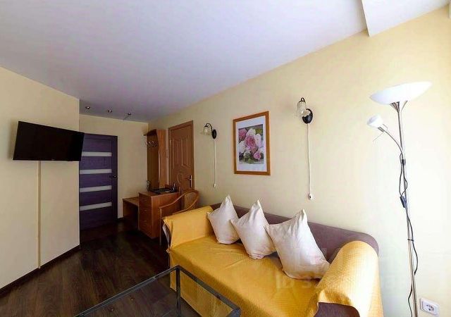 Уютное и тихое гостевое фермерство "Хутор Ярви" расположено в 200 км от Санкт-Петербурга в знаменитых Карельских лесах на берегу собственного чистейшего озера Волненъярви. Свежий воздух, зеркальное озеро, мраморный каньон и настоящее фермерское хозяйство оставят самые приятные впечатления от отдыха в любое время года. В "Хутор Ярви" гости могут выбрать проживание на свой вкус: коттедж вместимостью до 6 человек с камином и мангалом, уютную комнату на 2-х гостей, улучшенную 3-х местную комнату в гостинице европейского уровня. Для гостей есть уникальная возможность приобрести продукты фермерского производства. Сходить на рыбалку станет подарком для настоящих мужчин. Особое удовольствие подарит русская баня, после которой Вы сможете окунуться в чистейшее озеро, испытав невероятные ощущения. Также гости могут сыграть в настольный теннис или бильярд, покататься на финских санях или тюбинге, а для детей есть детская площадка. В ресторане подаются блюда традиционной русской и карельской кухни. Просторная комната с собственной террасой и видом на озеро. Идеален для комфортного размещения семьи с ребенком, либо троих взрослых гостей. Комната оборудована одной двуспальной кроватью или двумя односпальными кроватями и диван-кроватью. К услугам гостей просторное место для хранения вещей (шкаф и комод), холодильник, чайный набор, обеденный стол со стульями, место для приготовления барбекю.