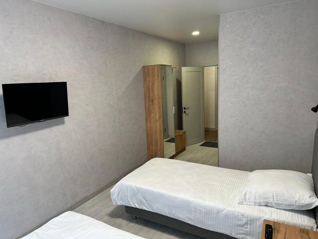 Гостевой дом "Северное Сияние" расположен в городе Костомукша. Расстояние до Аэропорта Петрозаводск 460 километров, до Ж/д вокзала 2 километра, до центра города менее 1 километра. К услугам гостей уютные номера различной площади, оснащения и вместимости, с собственными террасами. Все номера оборудованы удобными кроватями, функциональной мебелью, чайником, холодильником. На этаже с номерами расположена общая ванная комната и туалет. Также для гостей имеется общая кухня, которая полностью оснащена всем необходимым для приготовления и приема пищи. Гостям предоставляется бесплатная парковка, а также доступ к сети Wi-Fi. Двухместный номер делюкс общей площадью 30 кв.м. В номере две отдельные односпальные кровати. А также в номере следующие удобства: шкаф или гардероб, гладильные принадлежности, холодильник, ванная комната с душем.