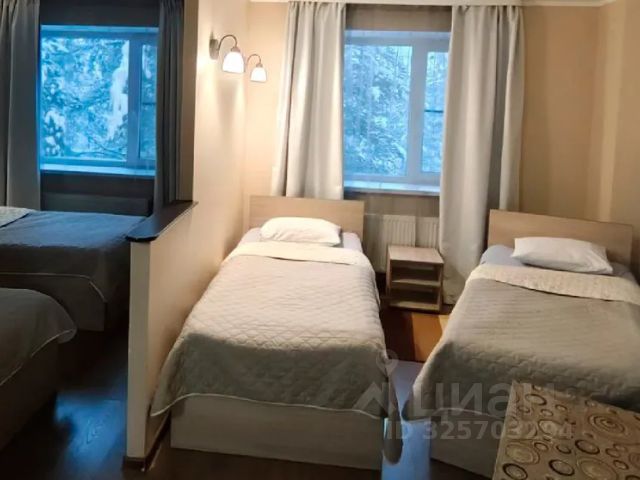 Трехместный стандартный. В уютном номере категории "Трехместный стандартный" гостям предлагается размещение на трех односпальных кроватях. Площадь номера 20 м2. Имеется возможность размещения дополнительного места для ребенка (детская раскладушка). Для удобства номер оснащен всем необходимым: рабочий стол, стул, ЖК-телевизор, скоростной доступный интернет (Wi-Fi), холодильник с морозильной камерой. Также имеется полка для одежды и чемоданная полка для размещения вещей. В ванной комнате : душевая кабина, сан.узел ,банные принадлежности и косметические принадлежности (банное полотенце ,полотенце для рук и лица ,полотенце для ног, жидкое мыло). По запросу можно взять фен и утюг. При заселении на длительный период смена постельного белья и полотенец производится через каждые три дня. В холодное время можно взять обогреватель в номер, летом по запросу предоставляется вентилятор. Завтрак включен в стоимость проживания. Дети до 7 лет размещаются бесплатно без предоставления места. Возможно размещение с животными, стоимость 250 руб.\сутки