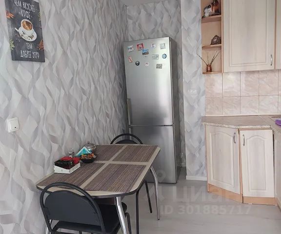 В квартире есть варочная панель с двумя конфорками, холодильник с морозильником, электрический чайник, микроволновка (в шкафу), вытяжка, посуда, утюг, гладильная доска, фен, тумбочка для вещей; две простые небольшие кастрюли и сковорода.