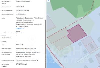 Право заключения договора аренды земельного участка из земель населенных пунктов, имеющего кадастровый номер 10:09:0080101:166, площадью 2000 кв.м, местоположение: Российская Федерация, Республика Карелия, Кондопожский муниципал...