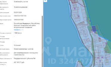 Право заключения договора аренды земельного участка из земель населенных пунктов, имеющего кадастровый номер 10:03:0011501:126, площадью 1500 кв.м, местоположение: Российская Федерация, Республика Карелия, Кондопожский район, Ко...