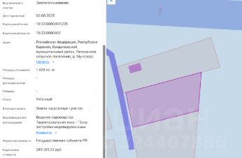 Право заключения договора аренды земельного участка из земель населенных пунктов, имеющего кадастровый номер 10:03:0060705:123, площадью 1498 кв.м, местоположение: Российская Федерация, Республика Карелия, Кондопожский район, Пе...