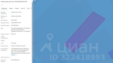 площадь 683 кв.м, местоположение: Российская Федерация, Республика Карелия, Питкярантский муниципальный округ, г. Питкяранта, вид разрешенного использования - Для индивидуального жилищного строительства.