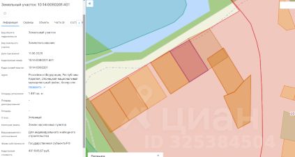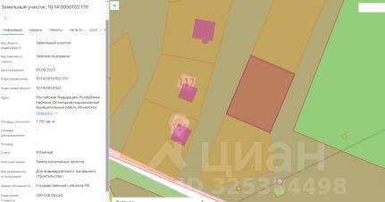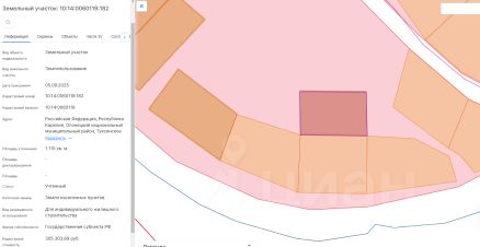 площадь 1 437 кв.м, местоположение: Российская Федерация, Республика Карелия, Питкярантский муниципальный округ, д. Кавгозеро, вид разрешенного использования Для индивидуального жилищного строительства.